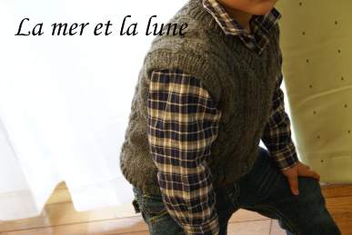 母が作ったベストを着ている息子たち。